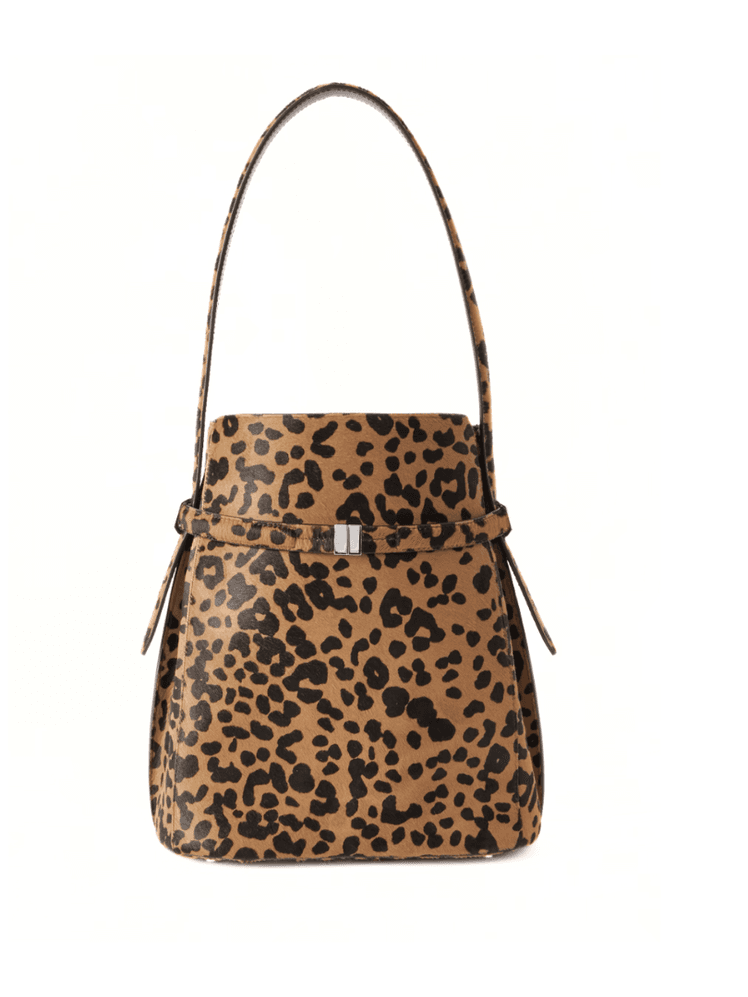 Bolso de leopardo con detalle de cinturón.